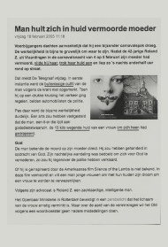 The man confessed the murder of his mother directly. He claimed to have acted on behalf of God. His nightly walk was meant to humble himself before God, he told the police. Whether he was inspired by the American movie Silence of the Lambs is not known. In this film a young man kills and flays women to achieve his ultimate dream of becoming a woman, with the use of the skins.