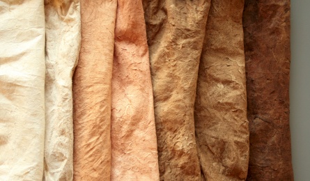 I find it regrettable that a lot of knowledge about vegetable leather tanning has been forgotten since the Industrial Revolution. With my 'Botanical Leather Tanning' project I examine the scope and diversity of local vegetable leather tanning agents, to bring them back to life. And to show the vivid, scenic properties of vegetable tanned skins.
