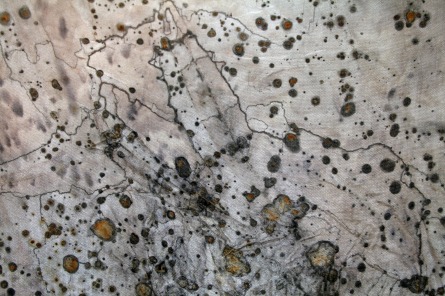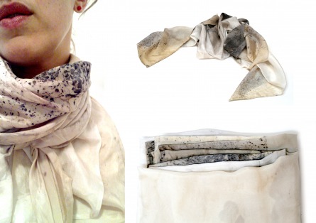 The print on this silk evolved out of the research towards a taxidermic process based on the technique of leather tanning craftsmanship. This is an handmade product based on a n organic process; therefor every piece of silk is unique.